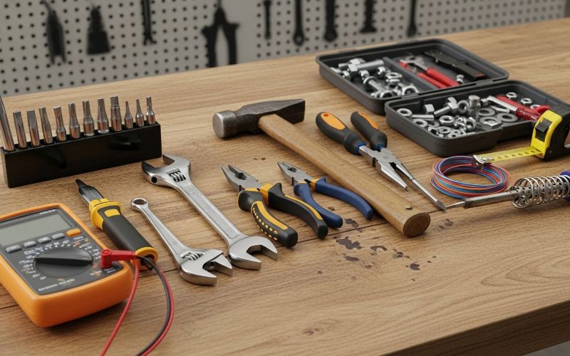 - Nářadí – základní sada klíčů, šroubováků, kleští, pil